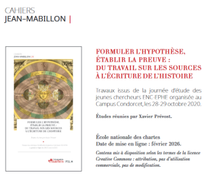 Parution du volume Formuler l'hypothèse, établir la preuve. Du travail sur les sources à l'écriture de l'histoire